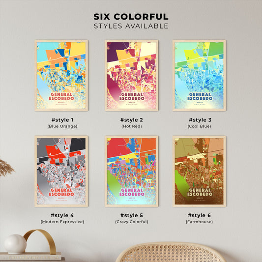 Colorful GENERAL ESCOBEDO MEXICO Fine Art Map Poster | Customizable