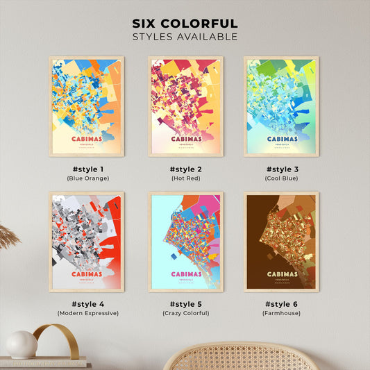 Colorful CABIMAS VENEZUELA Fine Art Map Poster | Customizable