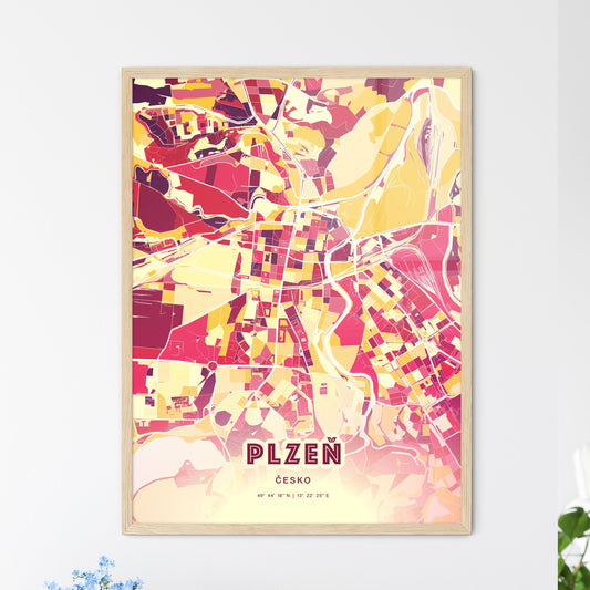 Colorful Plzeň Czechia Fine Art Map Poster | Customizable
