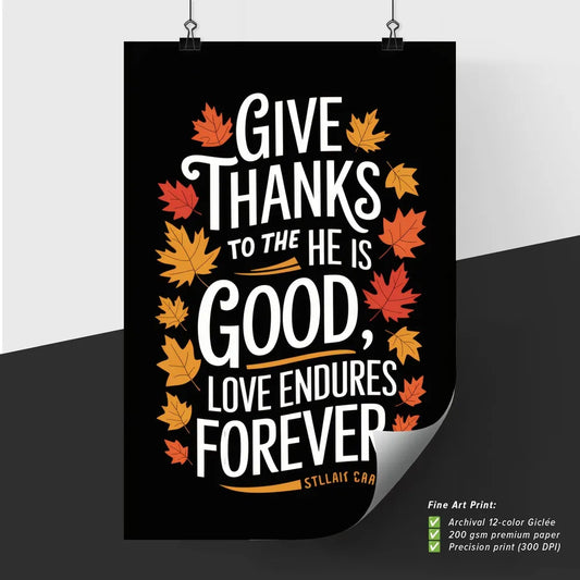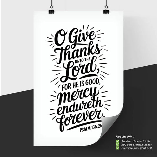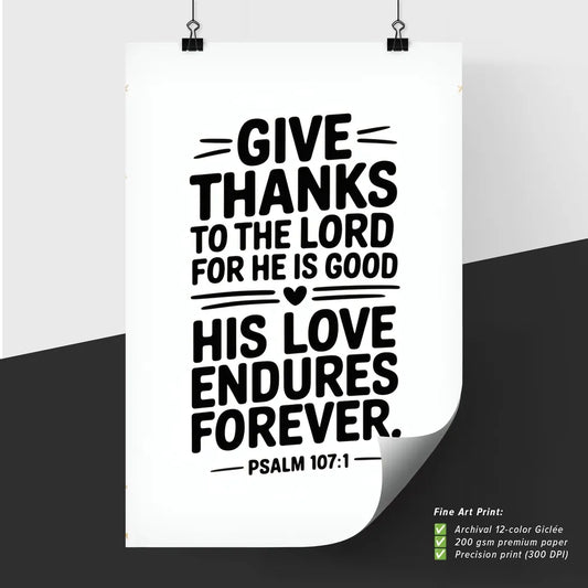 Inspirational Quote from Psalm 107:1 – Fine Art Poster Inspired by Vintage Advertisements