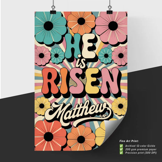 Floral Design with Text "He is Risen" – Fine Art Poster Inspired by Vintage Advertisements