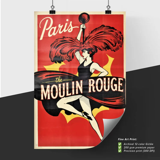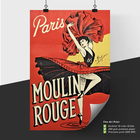 Moulin Rouge - Vintage poster of a can-can dancer. – Fine Art Poster Inspired by Vintage Advertisements