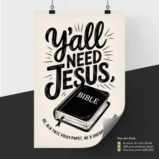 Y'all Need Jesus, Bible Design – Fine Art Poster Inspired by Vintage Advertisements