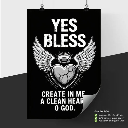 Heart with Wings and Religious Text – Fine Art Poster Inspired by Vintage Advertisements