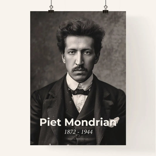 Optimistic Portrait of Piet Mondrian: Iconic Dutch Painter & De Stijl Pioneer on Rustic Background - Premium High-Quality Print