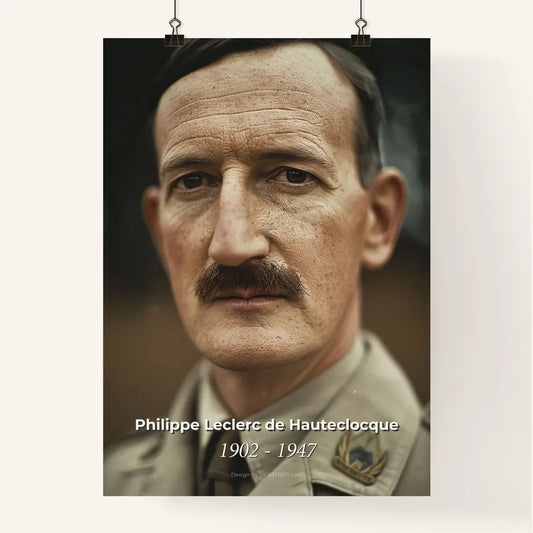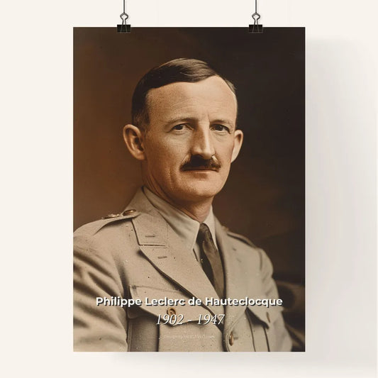 Philippe Leclerc de Hauteclocque: Iconic Portrait of a WWII Hero - High-Quality Monochromatic Print for Timeless Home Decor.