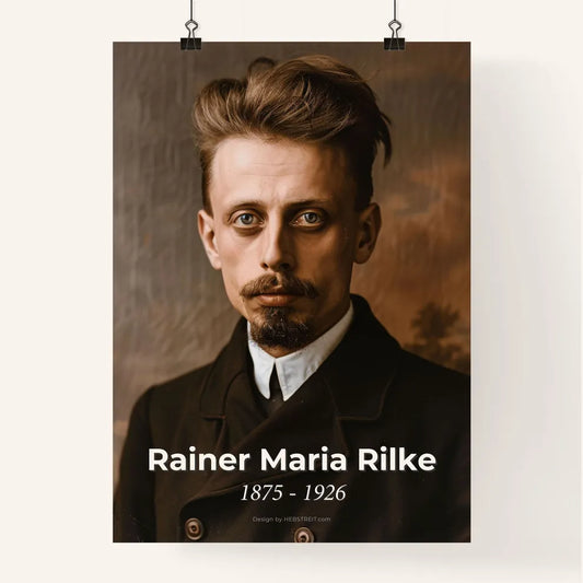 Rainer Maria Rilke Portrait: Captivating Ultrarealistic Art Print with Optimistic Expression - Ideal Gift for Literary Enthusiasts
