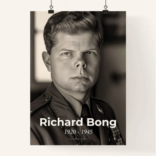 Richard Bong: WWII Hero & Medal of Honor Ace - Stunning Monochromatic Portrait Print in Rustic Elegance for Home Decor