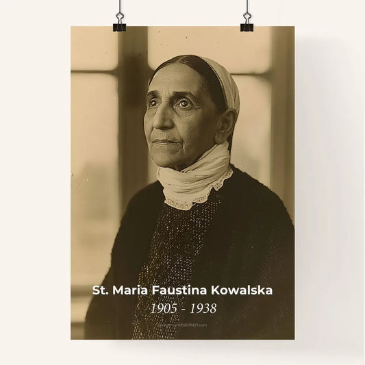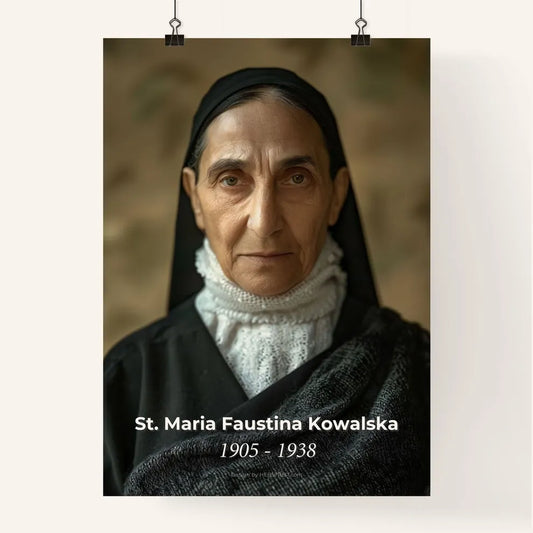 St. Maria Faustina Kowalska Portrait: Divine Mercy Icon in Monochrome - Exquisite Art Print for Home Decor & Meaningful Gifts