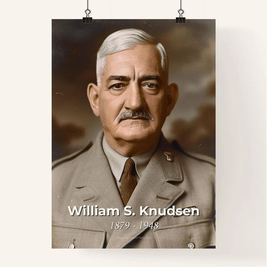 Timeless Hero: W.S. Knudsen, Visionary GM CEO & WWII Pioneer – Stunning Cinematic Portrait in Rustic Elegance for Home Decor