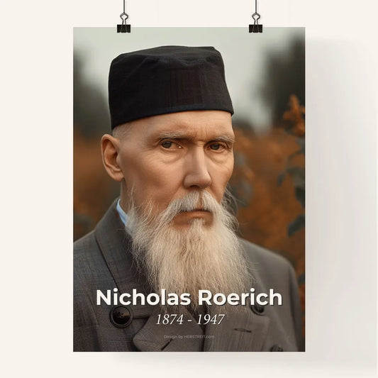 Timeless Portrait of Nicholas Roerich: Iconic Russian Artist & Theosophist - Stunning High-Contrast Art Print for Elegant Spaces