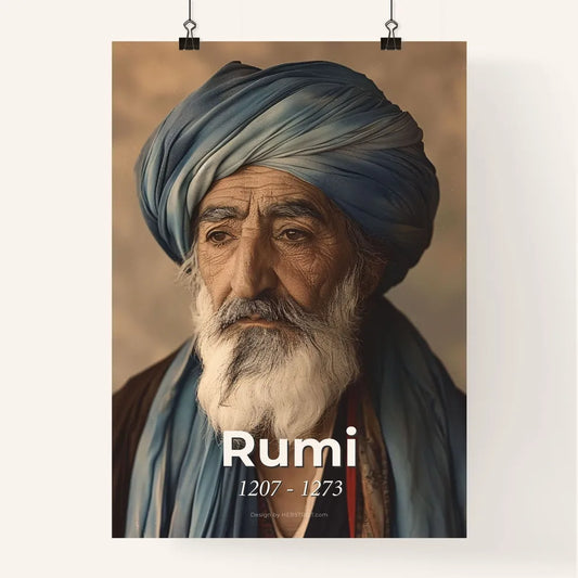 Timeless Reflection: Rumi, the Persian Poet, Captured in an Ultrarealistic Cinematic Portrait – Perfect for Home Decor & Gifts