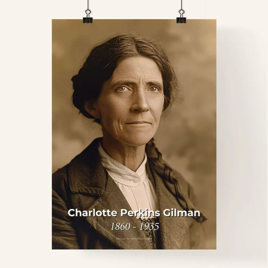 Timeless Tribute to Charlotte Perkins Gilman: Iconic Portrait of a Pioneer for Women's Rights in Artistic Monochrome Elegance