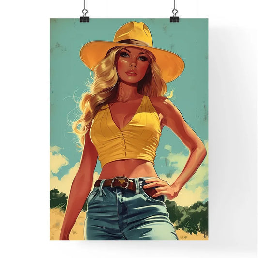 Vintage hipster woman - Art print of a woman wearing a hat and shorts