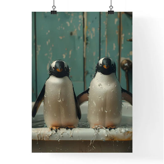 Whimsical Penguin Bathtub Buddies: Art Photography Inspired Storybook Illustration Featuring Penguins Playing in Snowy Water