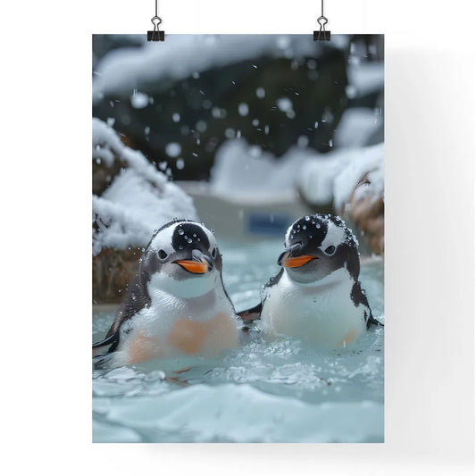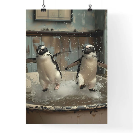 Whimsical Penguin Bathtub Buddies: Art Photography Inspired Storybook Illustration Featuring Penguins Playing in Snowy Water