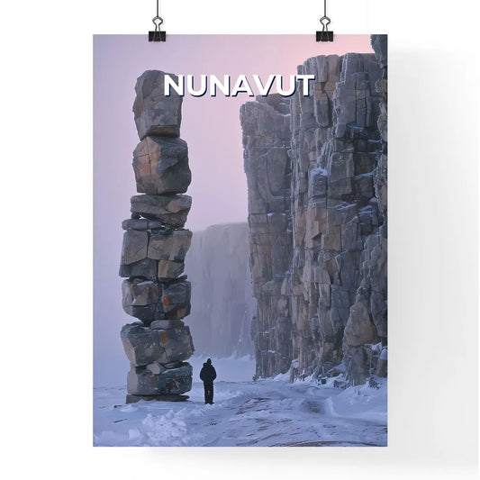 Nunavut Landscape Painting - Vibrant Artwork Showcasing Tall Rock Structure