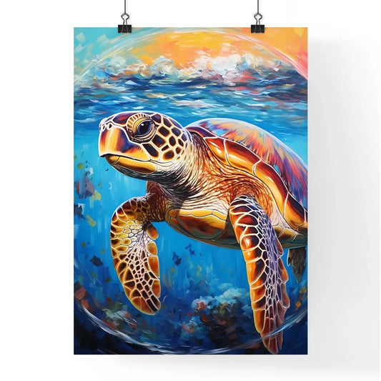 View Of Nice Sea Turtle Flying Down To The Ocean - A Turtle Swimming In The Water