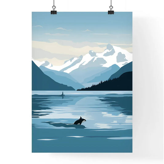 A Poster of glacier bay national park - A Dolphin Swimming In A Lake With Mountains In The Background