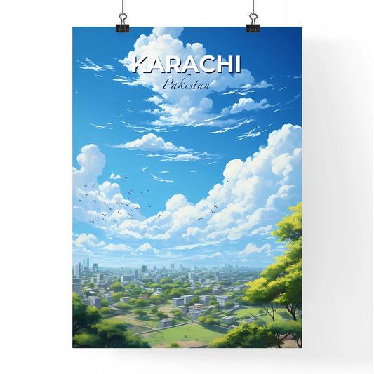 Karachi Pakistan Skyline - A Landscape Of A City With Trees And Birds Flying Over It - Customizable Travel Gift