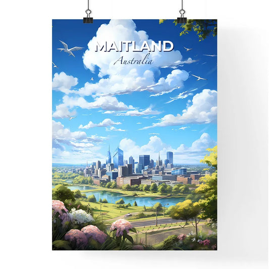 NewcastleMaitland Australia Skyline - A Landscape Of A City With A River And Birds Flying In The Sky - Customizable Travel Gift