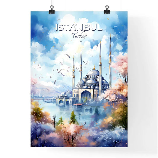 Istanbul Turkey Skyline - A Painting Of A Building With Towers And A River And Birds Flying - Customizable Travel Gift