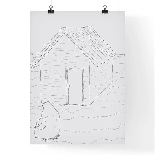 Two Little Humas In Front Of A Little House - A Drawing Of A House And A Bird