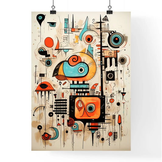 Rough Charcoal Sketch On Old Paper - A Painting Of A Bird And Geometric Shapes