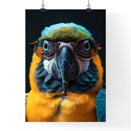 Vibrant oil painting of a colorful parrot wearing stylish sunglasses on a black background, showcasing the artist's unique style and attention to detail