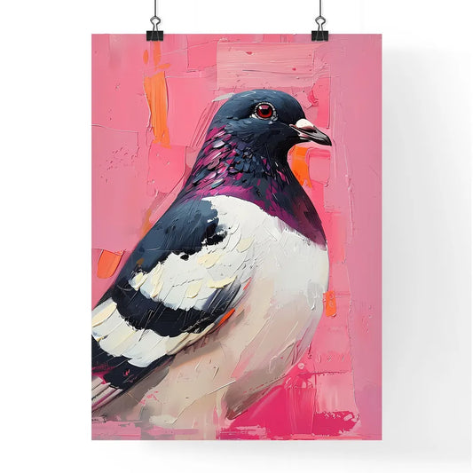 Vivid Impressionist Painting of a Pigeon in Vibrant Hues on a Pink Canvas