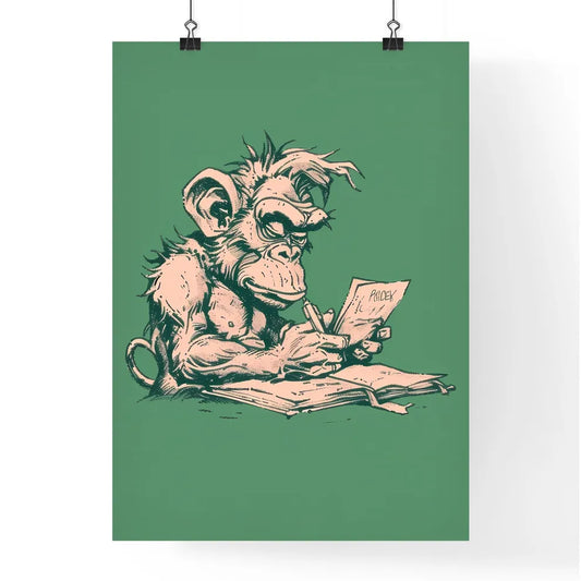 Painting: Animated Gif Monkey Writing Book, Gadgetpunk, Green, Chromatic, Text Based, Creepypasta