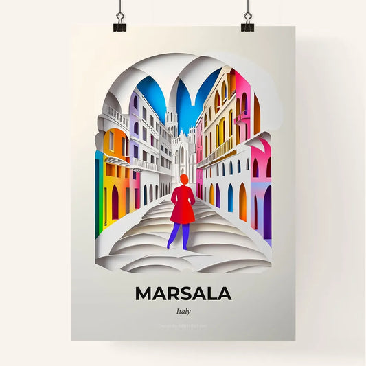 Vivid Marsala, Italy - a woman in a red coat is standing on a street