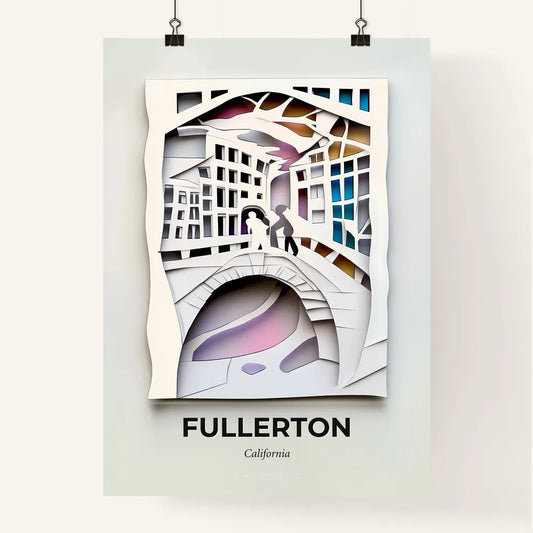 Vivid Fullerton, California - a paper cut of a person walking across a bridge