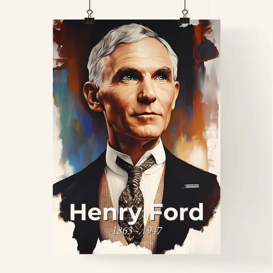 Portrait of Henry Ford, 1863 - 1947. Impressionistic painting of a man in a suit.