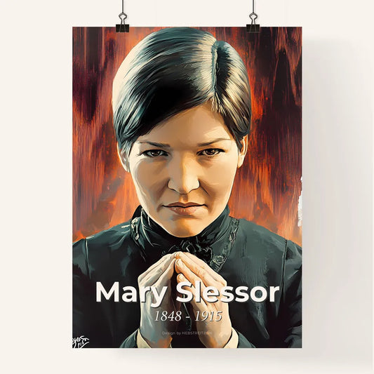Portrait of Mary Slessor, 1848 - 1915. Impressionistic painting of a woman with her hands together.