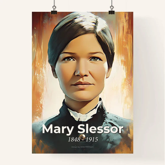 Portrait of Mary Slessor, 1848 - 1915. Impressionistic painting of a woman with a black shirt.