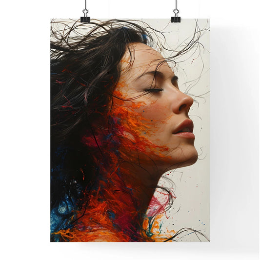 A Poster of a painting of a woman - A Woman's Face With Colorful Paint On It