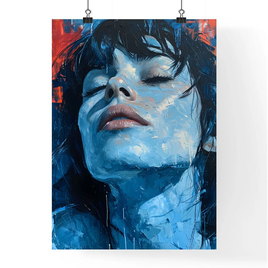 A Poster of painted portrait of woman in bed - A Woman With Her Eyes Closed