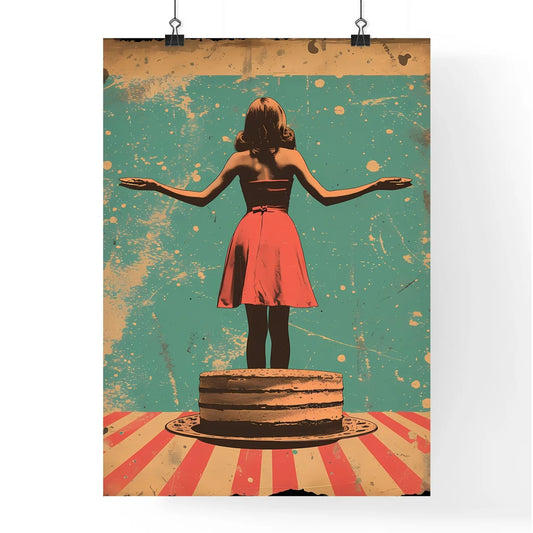 A super morbidly obese immobile woman chef - Art print of a woman standing on top of a cake