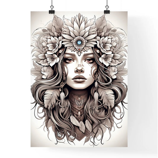 Drawing Of A Woman With Flowers In Her Hair Art Print
