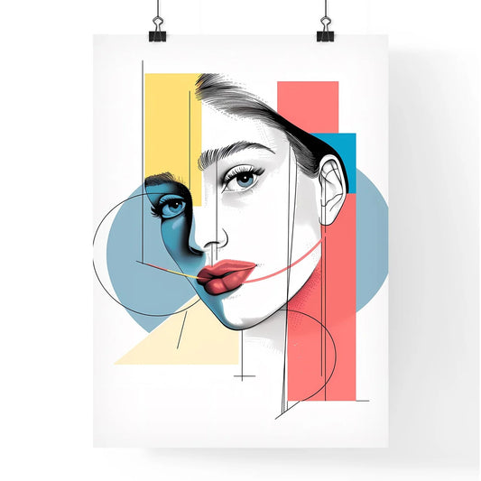 Fluid Geometry: Vibrant Face Painting on Danish Pastels, Collaged Elements & Puzzle-Like Neoclassical Background - Artistic Poster