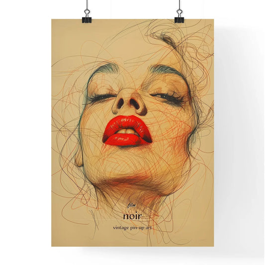 film, noir, vintage pin-up art, A Poster of a woman with red lips and red lipstick