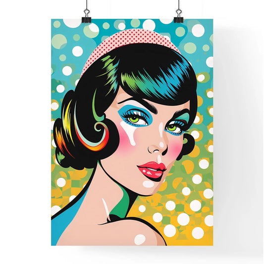 Playful Pop Art: Vibrant Painting with Green-Eyed Blue-Haired Woman