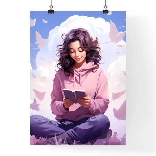 Minimalist Iconic Cartoon Retro Happy Woman Reading Book Vibrant Art