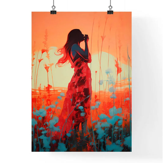 A Poster of inverted infrared - A Woman In A Dress In A Field Of Flowers