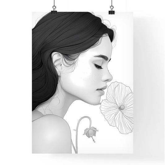 Clean line art, woman, flower, painting, art, poster, print, long hair, flowers, vibrant