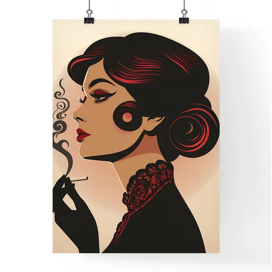 posing, A Poster of a woman with long hair and red lipstick