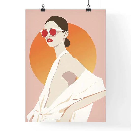 Abstract Woman Painting Art Minimalist Poster Design, 3 Color Soft Pink Background, Sunglasses White Shirt