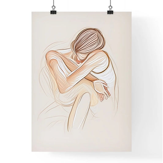 Minimalist Boho Art Poster: Vibrant Drawing of Woman Sitting, Gouache, Papier Couché, Muted Color Palette