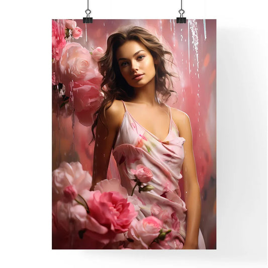 A Poster of A young lady is wearing a pink dress - A Woman In A Dress With Flowers